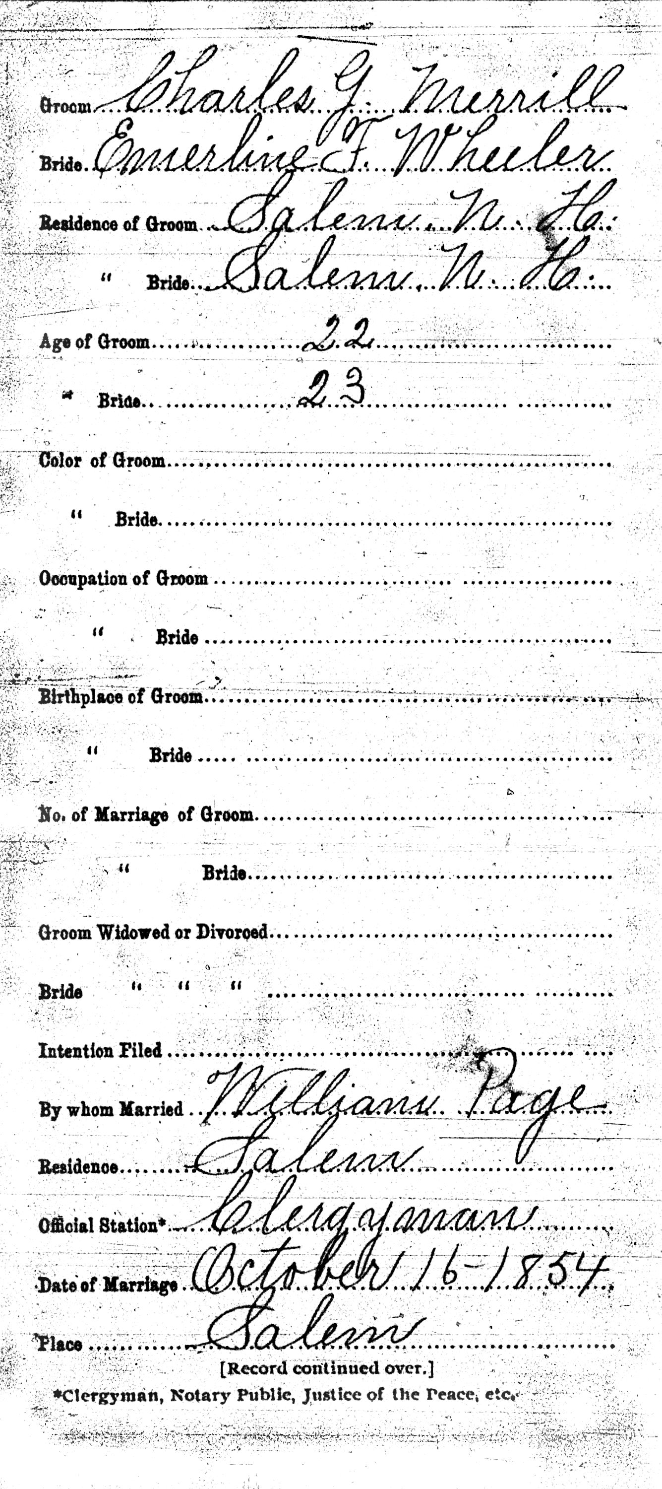 Charles Geer Merrill and Abigail Elizabeth "Abbie" (Altenburg) (Vail) Fancher were married after 1883, in Binghamton, Broome Co., NY.