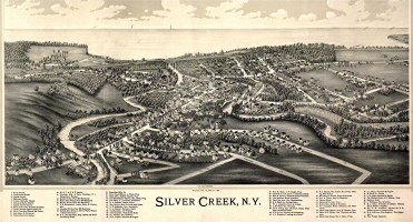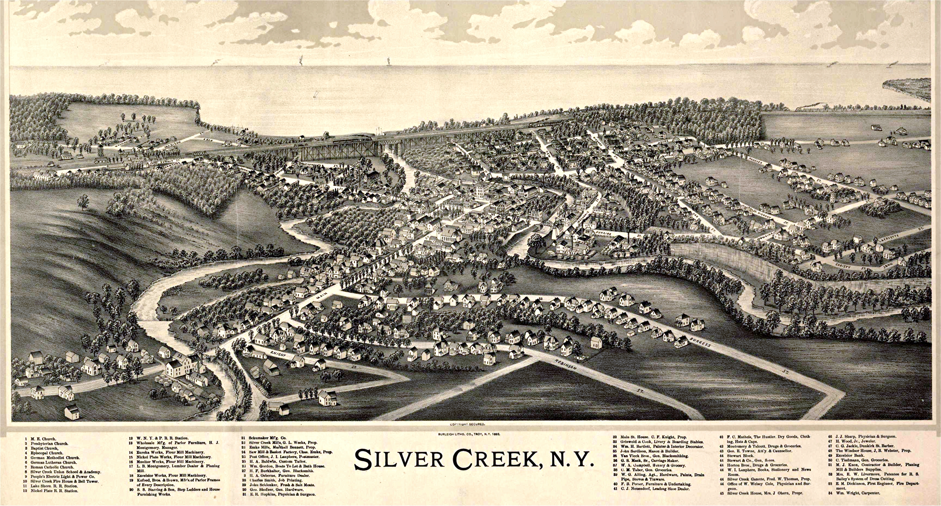 As early as 1826, before Mr. Lee ever set forth upon the fateful Sunday walk that brought him to Silver Creek, shipbuilding was in progress. The ship-yard was erected on the east side of Silver Creek not far below the juncture of Walnut Creek, very much on a line with the Rumsey Street of today. Here the well-known "Victory" was started in May 1826 and successfully launched in September. The owner and first ship builder, Mr. Holman Vail, a millwright and native of Otsego County had to have the channel excavated to permit the ship to enter the lake. With this channel deepened, a more ideal location for a ship yard could not be desired. It was as ideal for Mr. Vail's purpose as the bay with its protecting west cliff was to be for Mr. Lee. Though this first ship was lost by its owner because of the great expense involved and two unsuccessful shipping seasons, it was a very fine vessel indeed. It had a fine record through the years and was the forerunner of others which were to come from that same shipyard. The schooner "Victory" has gone down in history as the first lake vessel to be built in Silver Creek and the first sail craft to be floated from our creek. Holman Vail with his brother John have also their place in history as the pioneer shipbuilders; there were none before them.