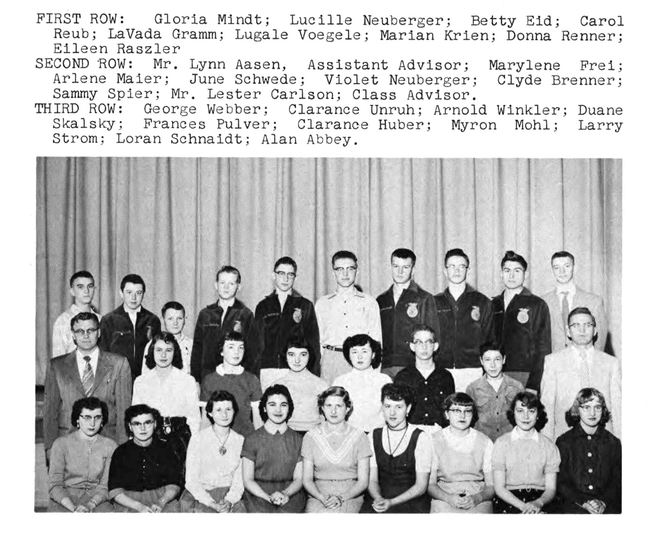 Alan Lee Abbey in the Freshman Class Picture, Beulah High School Yearbook, Beulah, Mercer Co., 1956. Photo courtesy of Kay Koslan .