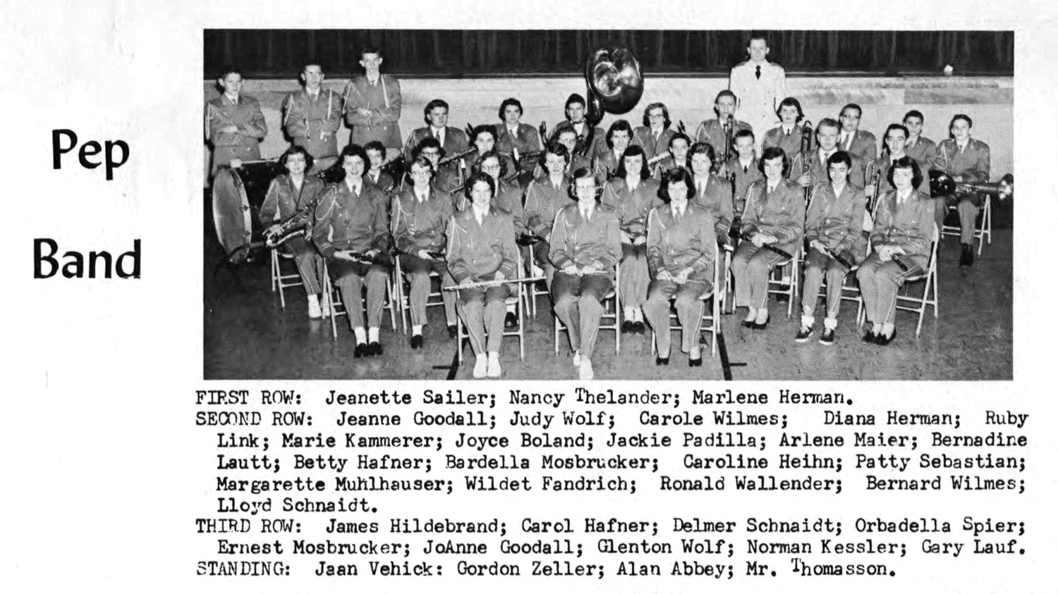 Colleen Theresa Abbey and Alan Lee Abbey in Pep Band, Beulah High School Yearbook, Beulah, Mercer Co., 1956. Photo courtesy of Kay Koslan .