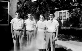 Jim Abbey, Alan Abbey, Alice (Herman) Abbey, and Gale Abbey, Beulah, Mercer Co., ND, 1959. Photo courtesy of Kay Koslan.