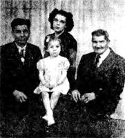 George D. Bowers was born in Hardin County, Iowa 79 years ago and moved to Beulah in 1916 from Minnesota, where he farmed. In 1918, he started to work for the coal mine and power company and stayed with the company until 1927 when he retired. At the present time he is living in Portland, Oregon with one of his sons, Clifford Bowers. Lester Bowers was born in Chippewa County, Minnesota, in 1905. He began work at the mine and power company in 1920 and has remained with them since that time. He married Mildred Pulver in 1926 and now has a family of three girls and three boys: Pearl (Mrs. David Welk), Darhl, Genevieve, Yvonne, Delbert, and Wallace. All of whom are living. Mrs. David Welk (Pearl Bowers) was born in Beulah in 1927. She graduated from Beulah High School and is now living in Mandan. Her daughter, Janice, is now four years old and the fourth generation! She was born in Portland, Oregon. Mrs. Welk also has a son, Gerald, who is now 7 months old.