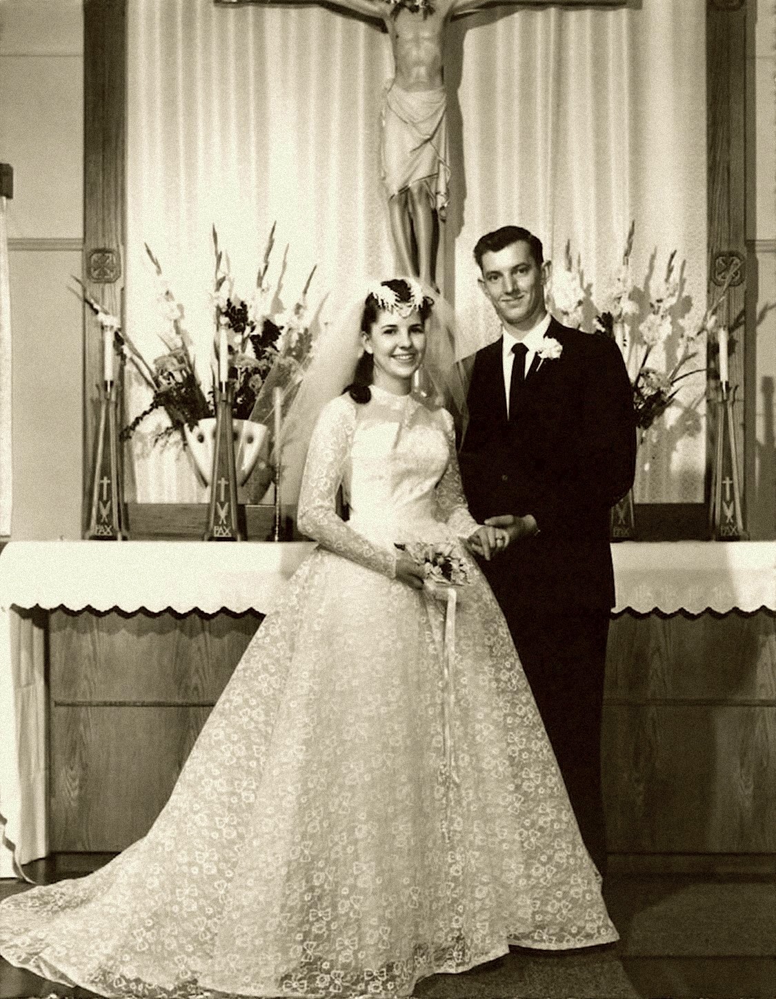 Alan Abbey and Janice Welk were married Apr. 25, 1964 at St. Joseph Catholic Church in Beulah. Alan's sister, Marilyn Gustafson, made their wedding cake.