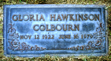 - Gloria Ruth Hawkinson: Born November 12, 1922, in Minneapolis, Hennepin Co., MN; Baptized April 4, 1923, at St. Paul Church, Minneapolis, Hennepin Co., MN; Died June 16, 1979, in Alhambra, Los Angeles Co., CA (age 56). Buried in Rose Hills Memorial Park, Whittier, Los Angeles Co., CA. Married September 11, 1945, in California, to Raymond Ira Colbourn: Born January 13, 1919, in New Haven, New Haven Co., CT; Died December 17, 1977, in South Pasadena, Los Angeles Co., CA (age 58). Buried in Rose Hills Memorial Park, Whittier, Los Angeles Co., CA.