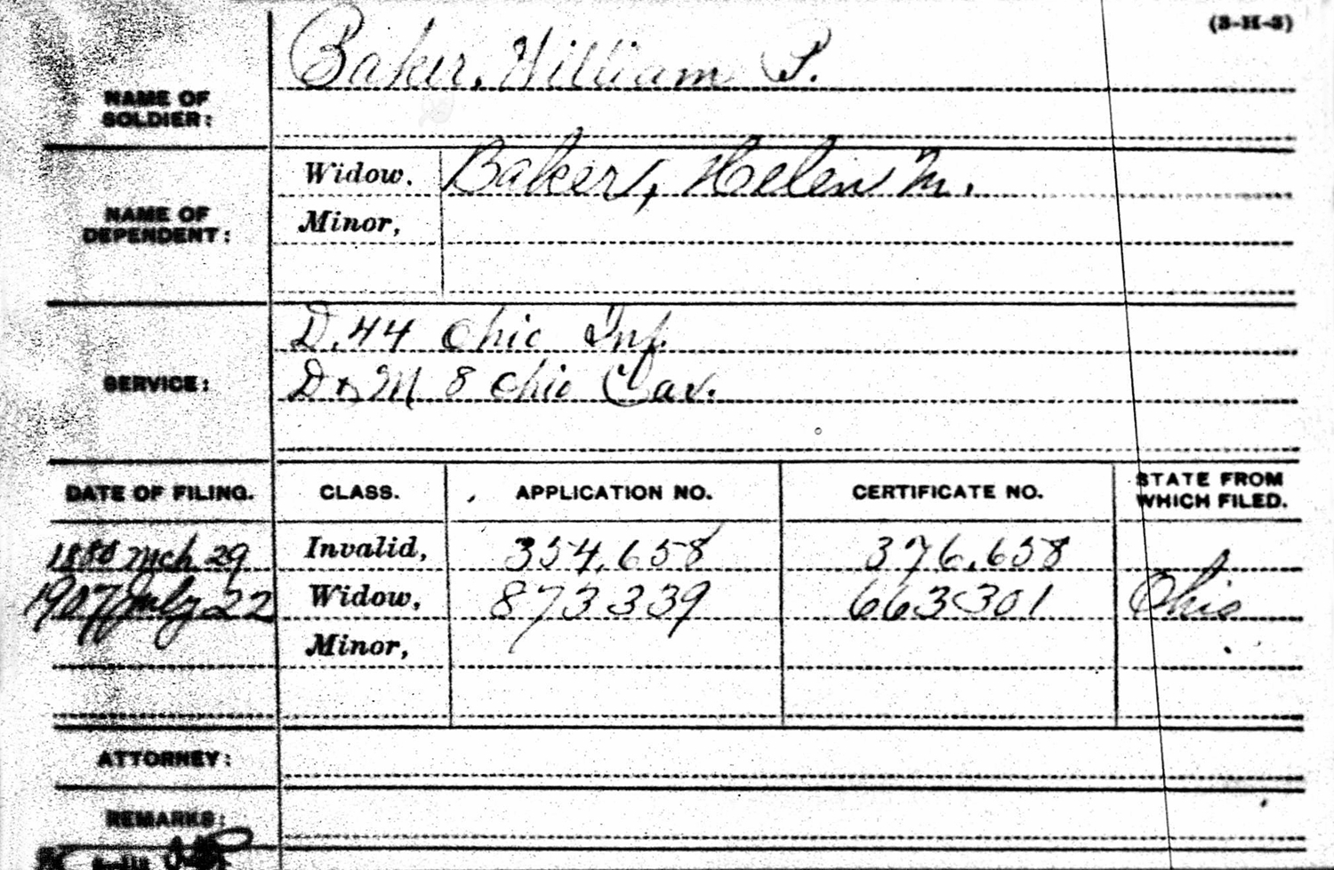 The 1870 U. S. Census taken on July 8, 1870, shows William P. Baker (age 30) born in Ohio, and with real estate of $500 is an unmarried Painter and is living in the Village of Yellow Springs, Miami Twp., Greene Co., OH. He is living in the household of a Retired Merchant, Nathaniel Benedict.
