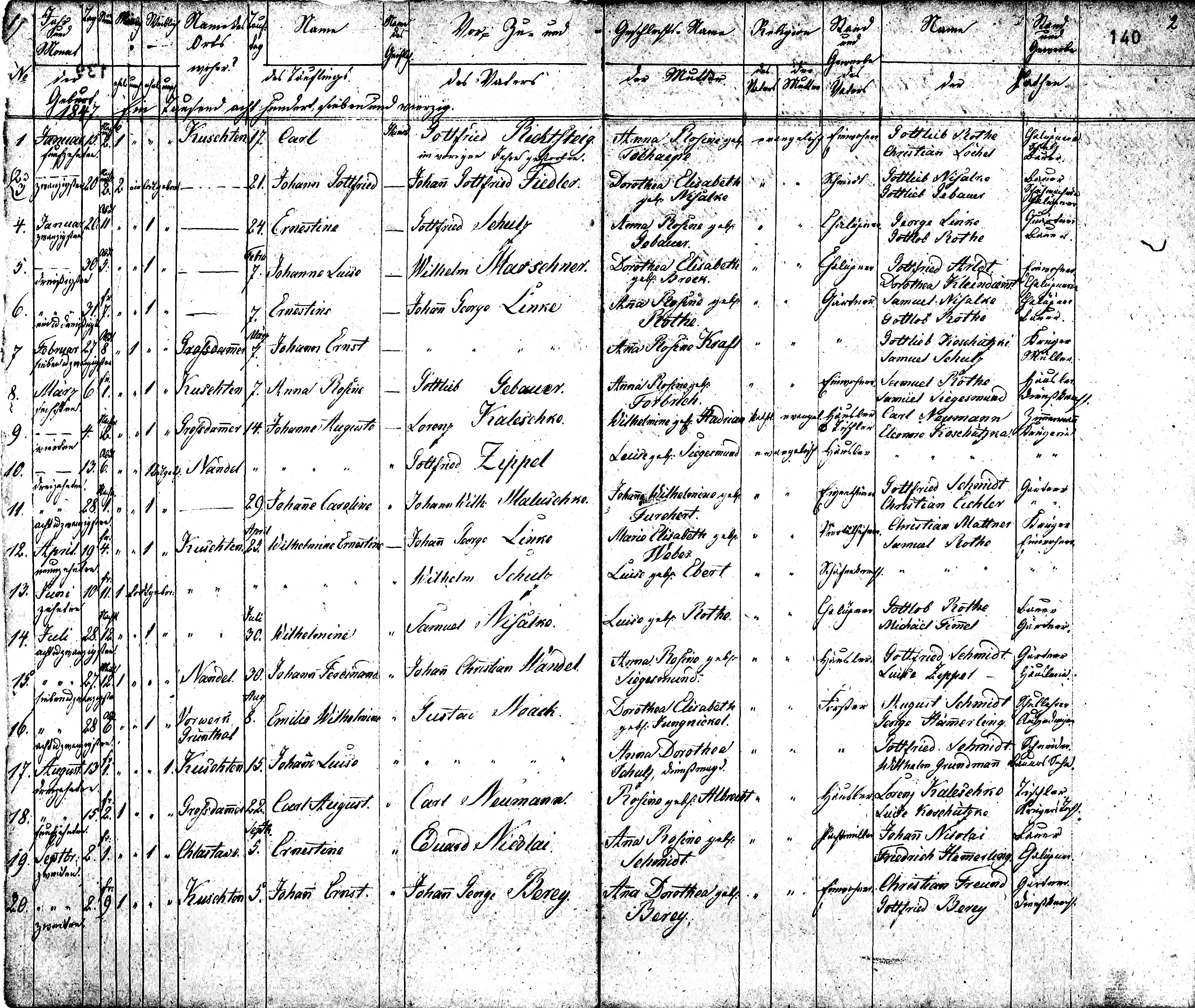 Johann Gottlob Gebauer was born 1807 in Kuschten, Kreis Meseritz, Posen, Preussen, and died Unknown. He is the son of Martin Gebauer, and Anna Maria Wolf.
