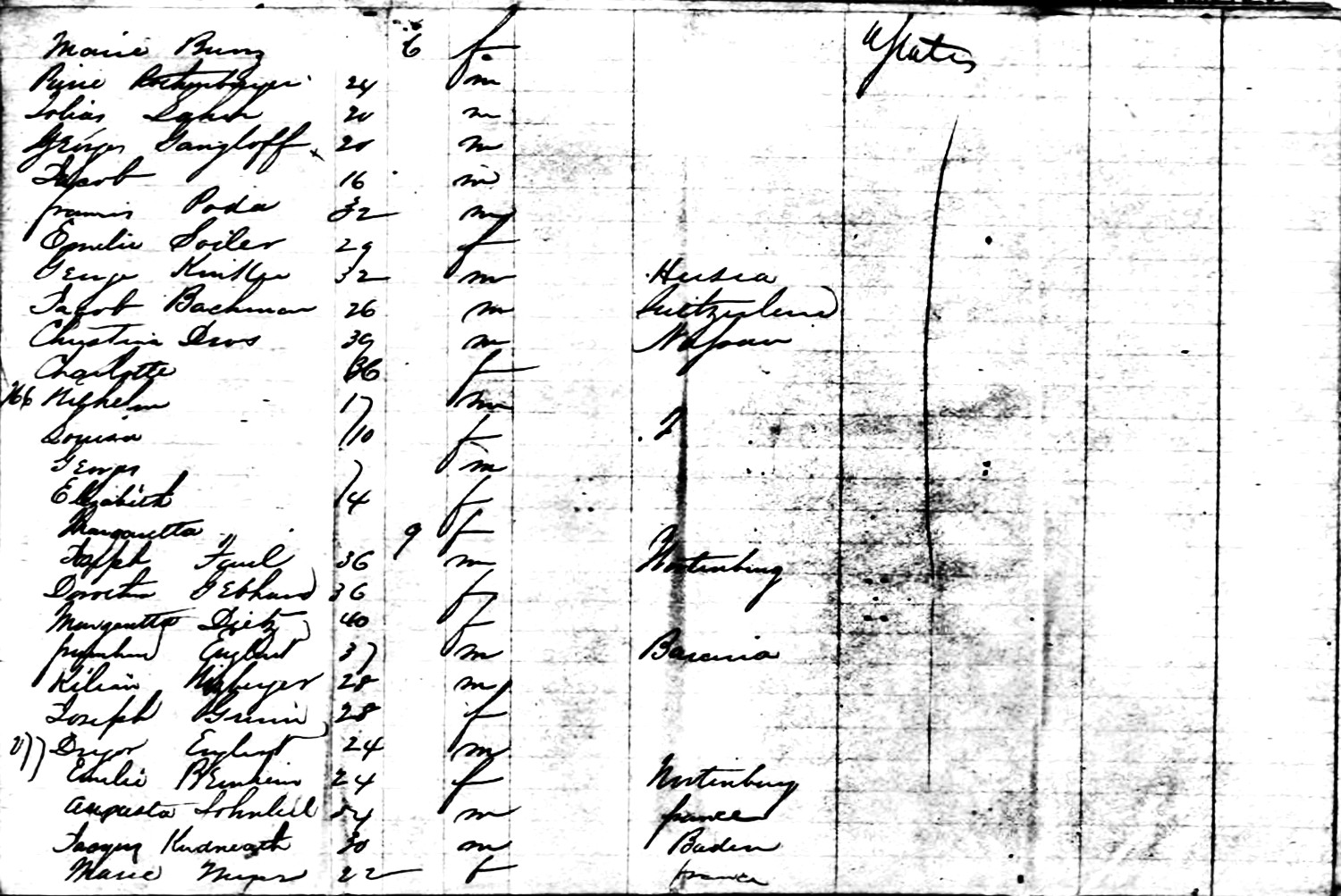 Dorothea ( Wiehle ) Gebauer (age 36) born in Württemberg, departed from Le Havre, France, aboard SS Admiral, and arrived November 14, 1856, at the Port of New York, NY.