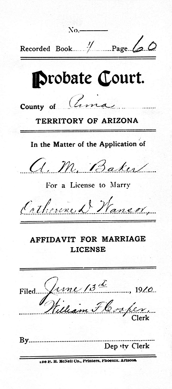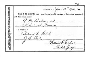 Katharina "Katharine" (Dolak) Wansor were married June 13, 1910, in Tucson, Pima Co., Arizona