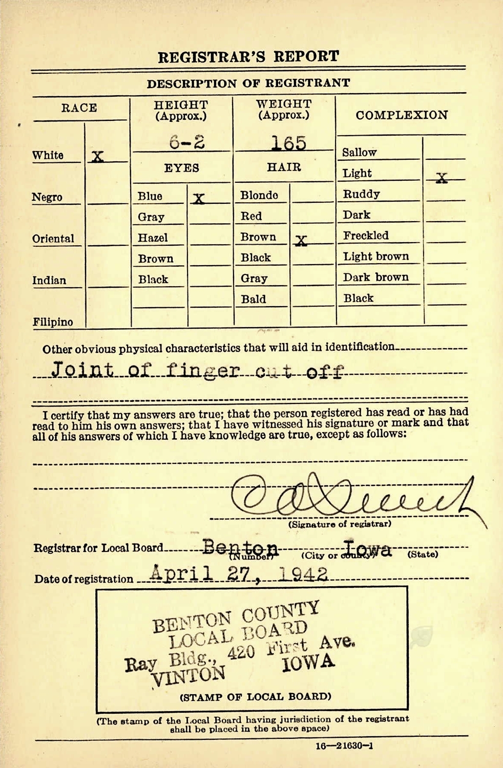 Born July 26, 1912, in Belle Plaine, Benton Co., IA; Died