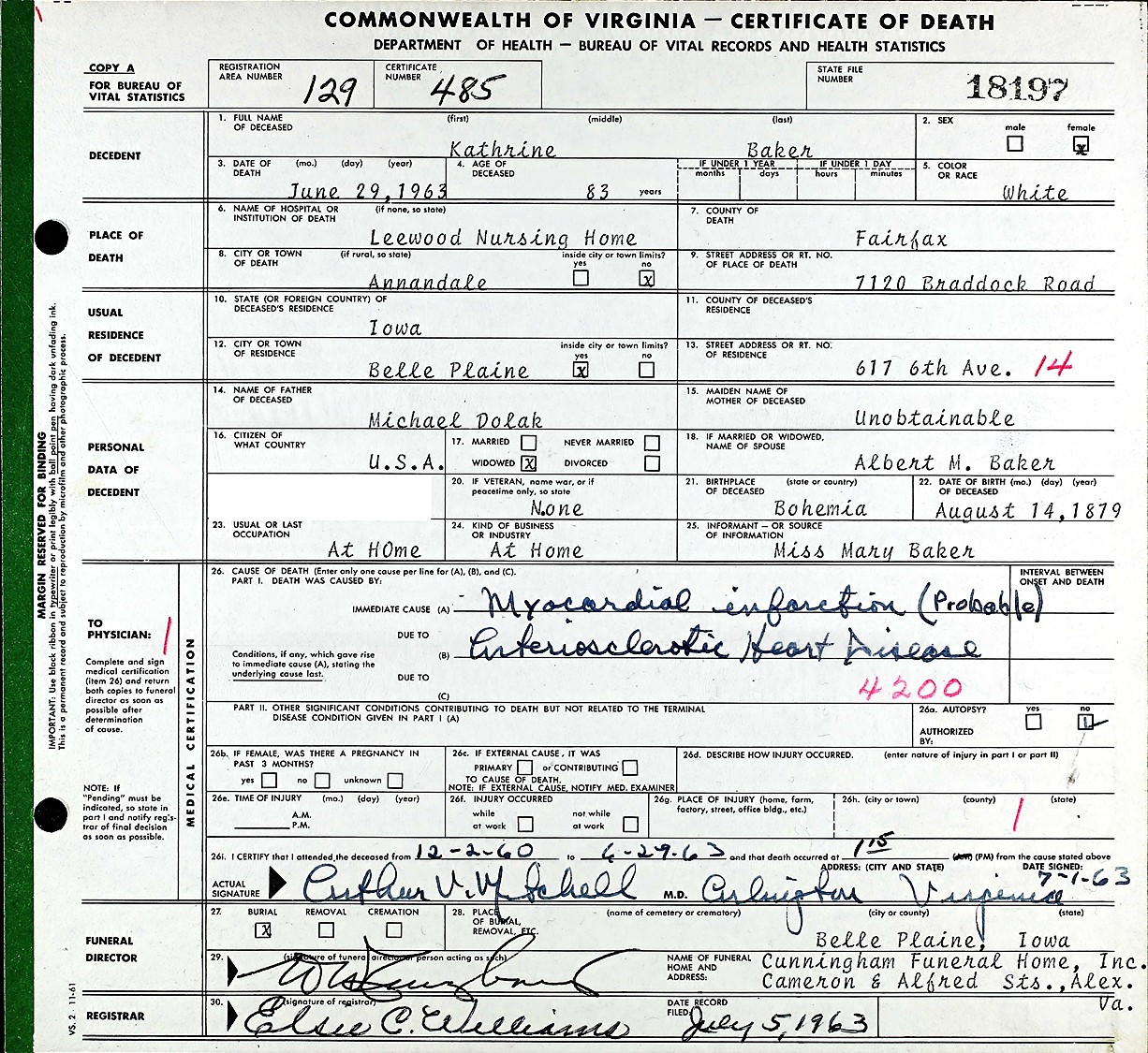 Katharina "Katharine" (Dolak) (Wansor) Baker had four children:
