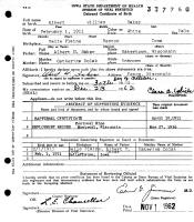 Albert William Baker was born February 1, 1911, in Belle Plaine, Benton Co., IA, and died November 7, 1988, in Ashland, Ashland Co., WI, at age 77. He is the son of Albert Means Baker of Yellow Springs, Greene Co., OH, and Katharina "Katharine" (Dolak) Wansor of Austria (Bohemia).