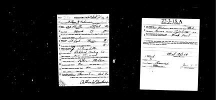 The WWI Draft Registration Report dated June 5, 1917, shows Arthur W. Anderson, born March 14, 1896, in St. Paul, Ramsey Co., MN, is an unmarried Steam Fitter for Oakland Heating Co. and claims having a father and mother solely dependent upon him for their support. He is living at 698 Desota, 1st Ward, St. Paul, Ramsey Co., MN. He claims to have a weak heart.