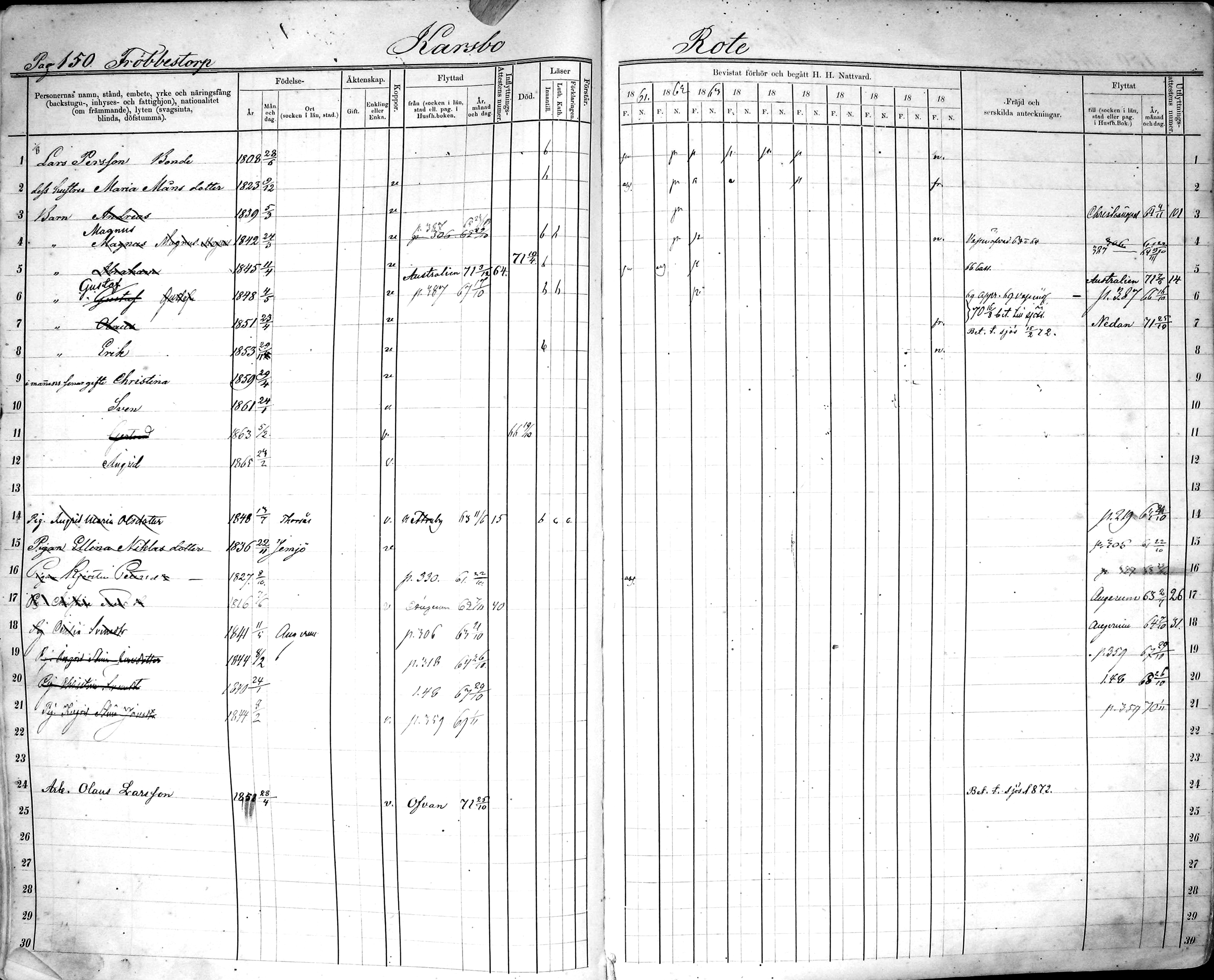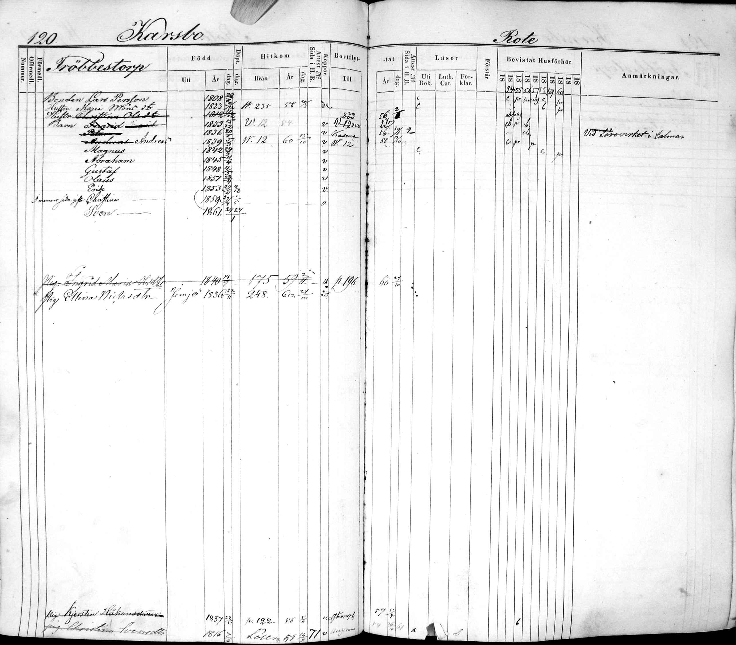 Andreas Larsson was born March 5, 1839, in Fröbbestorp, Kalmar Co., Sweden .