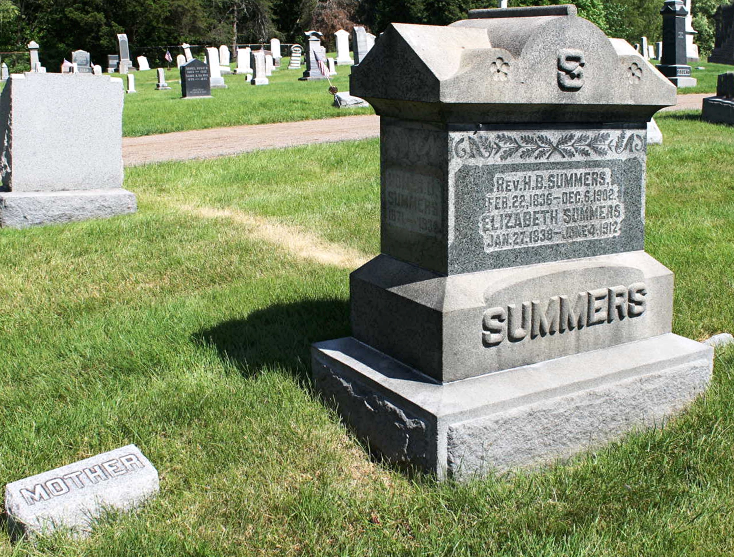 - Henry Blake Summers, Reverend: Born February 22, 1836, near Bellfont, Center Co., PA; Died December 6, 1902, in Louisville, Stark Co., OH (age 76). Buried in East Liberty Cemetery, Green, Summit Co., OH. Married February 3, 1857, in Huntingdon, Huntingdon Co., PA, to Elizabeth Schultz: Born January 27, 1838, in Franklin, Huntingdon Co., PA; Died June 4, 1912, in Mogadore, Summit Co., OH (age 73). Buried in East Liberty Cemetery, Green, Summit Co., OH.