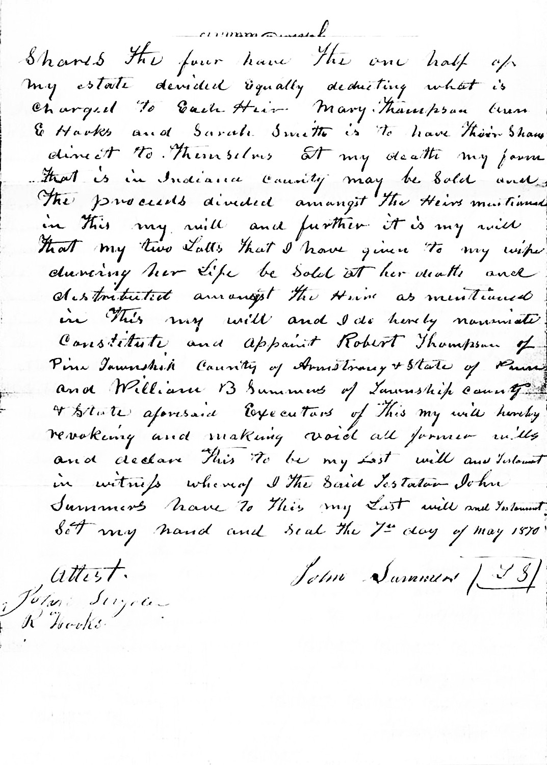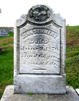 John Summers died June 9, 1870, in Kittanning, Armstrong Co., PA, at age 65. Buried in Widnoon Methodist Cemetery, Widnoon, Armstrong Co., PA .