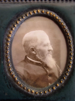 Newspaper article on back of his portrait: