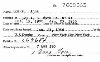 Anna (Fischer) Goerz was naturalized January 23, 1956, in New York City, NY.