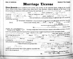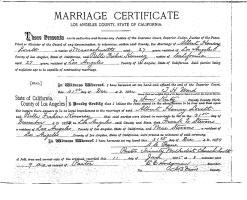 Charles Hamilton Ritchie (age 27) a bachelor, and Arabella "Bella" (Fisher) Lovett (age 30), a divorcee, were married Saturday, July 22, 1899, in Los Angeles Co., CA.