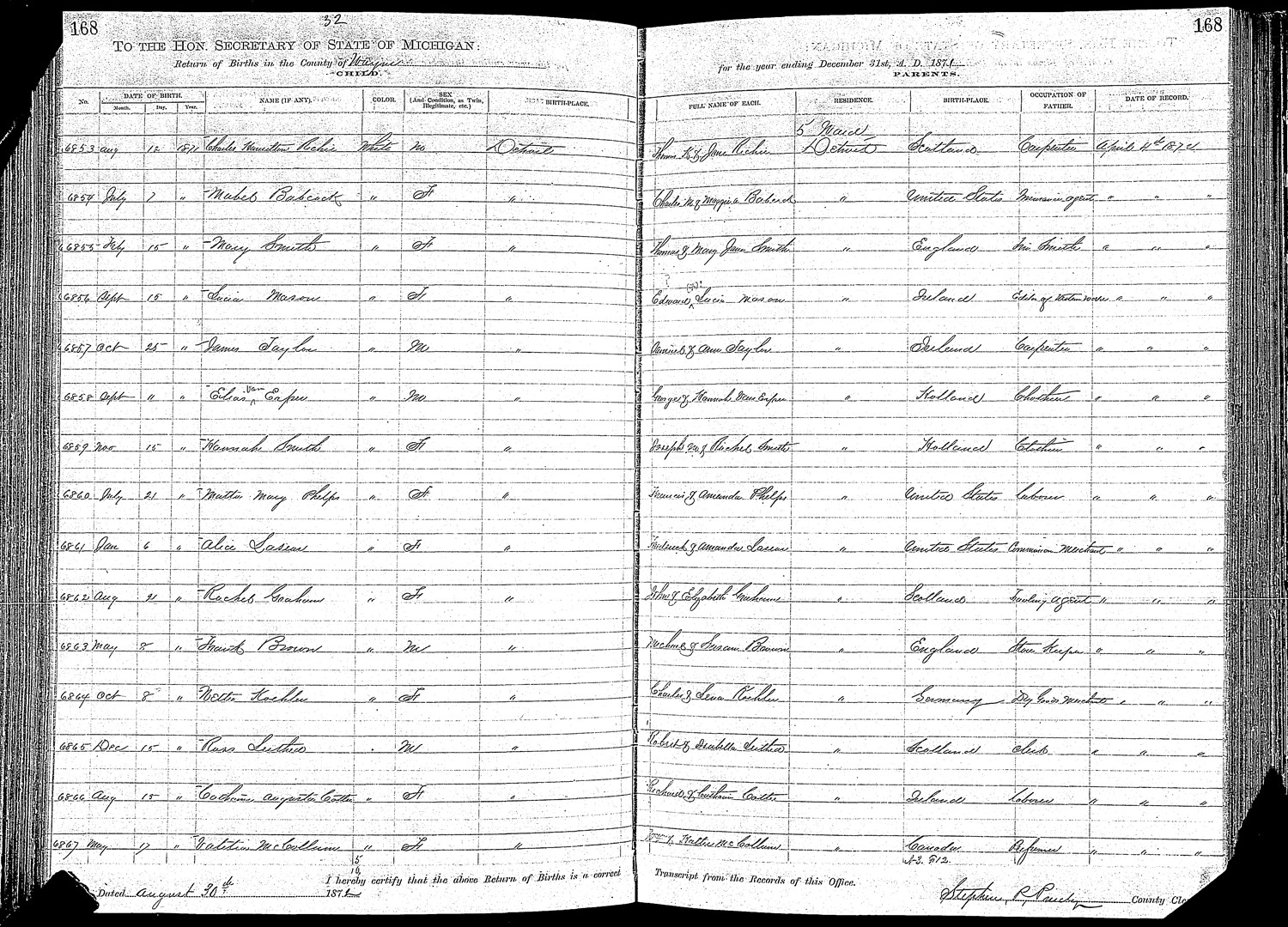Charles Hamilton Ritchie was born August 12, 1871, in the 5th Ward, City of Detroit, Wayne Co., MI.