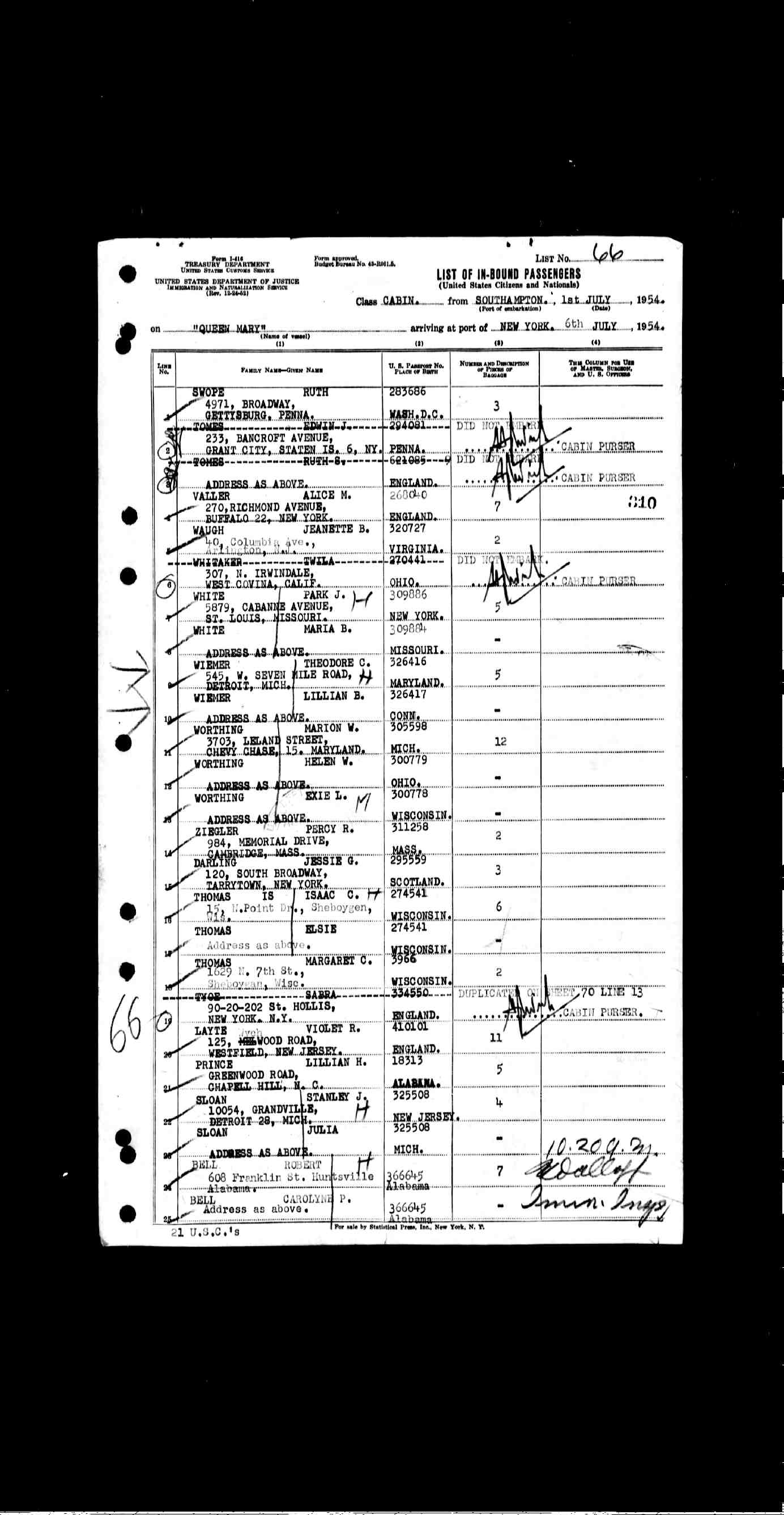 returned from Southampton, England, aboard the S. S. Queen Mary.