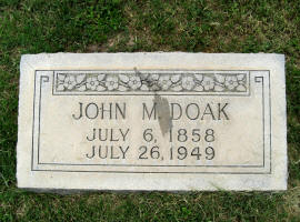 John Motley Doak is buried in Westlawn Cemetery, Del Rio, Val Verde Co., TX. Thanks to Find-A-Grave for making this photo available.