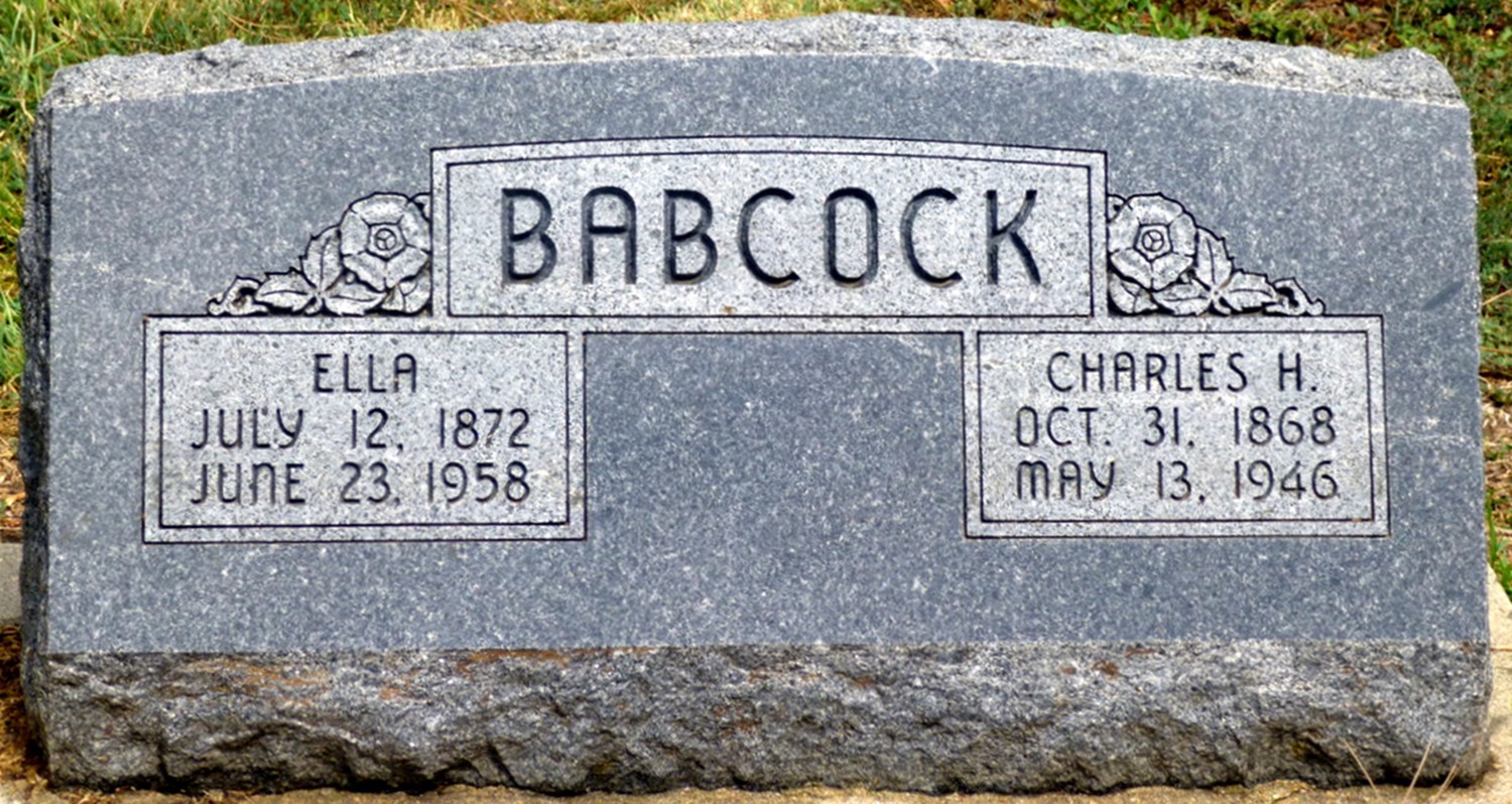 Charles H. "Charlie" Babcock and Ella (Rhodes) Babcock are b uried in Fairbury Cemetery, Fairbury, Fairbury Twp., Jefferson Co., NE. Thanks to Find-A-Grave for making this image available.