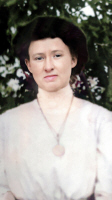 Hastings, Adams Co., NE, about 1910. Original photo on left. Colorized photo on right.Alexander A. "Alex" Nephews Jr. (age 33), a divorcee, and Bessie Mae "Bess" Abbey (age 25), a maiden, were married October 12, 1915, in Grand Island, Hall Co., NE.