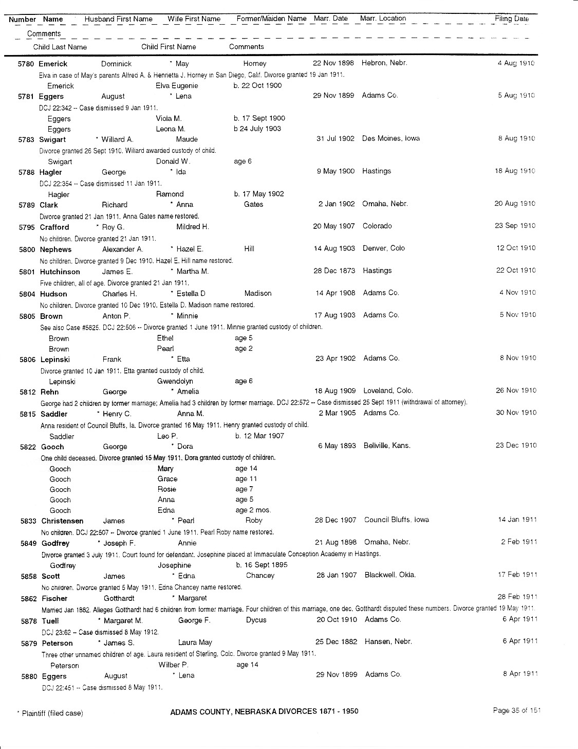 Alexander "Alex" Nephews Jr. and Hazel E. Lapp (Hill) Nephews were divorced December 9, 1910, in Hastings, Adams Co., NE.