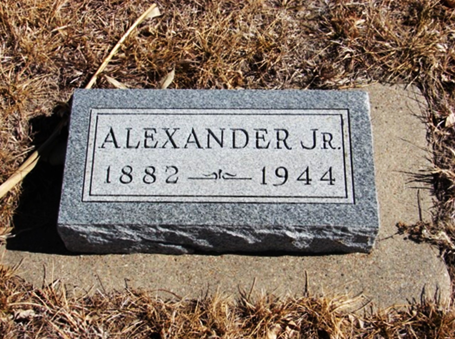 Alexander A. "Alex" Nephews Jr. died January 19, 1944, at Mary Lanning Memorial Hospital, Hastings, Adams Co., NE, at age 61. Buried in Kenesaw Cemetery, Wanda Twp., Adams Co., NE.