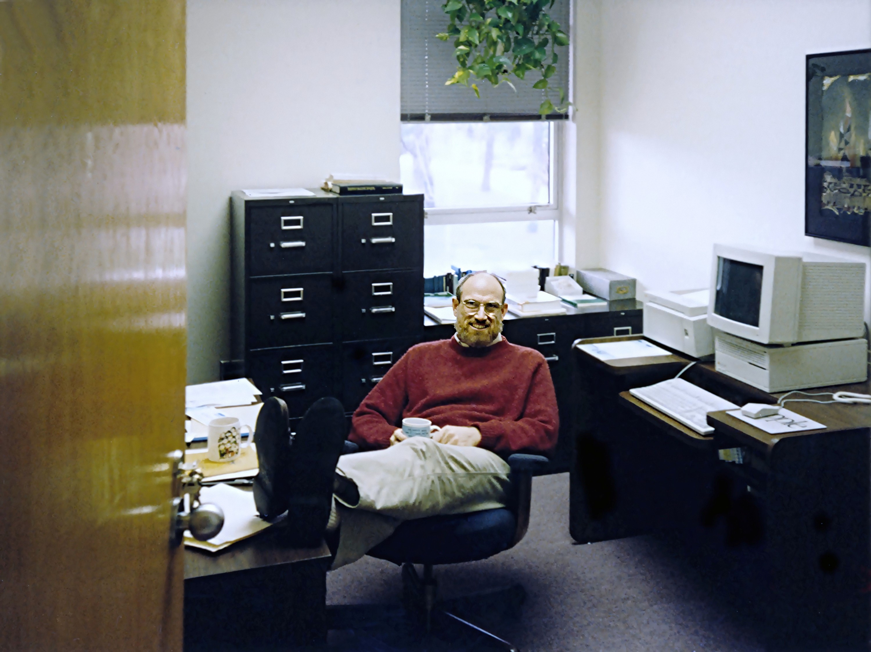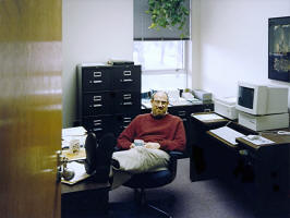 Dr. Bruce Dean Larson at his UNCA desk, Asheville, Buncombe Co., NC,