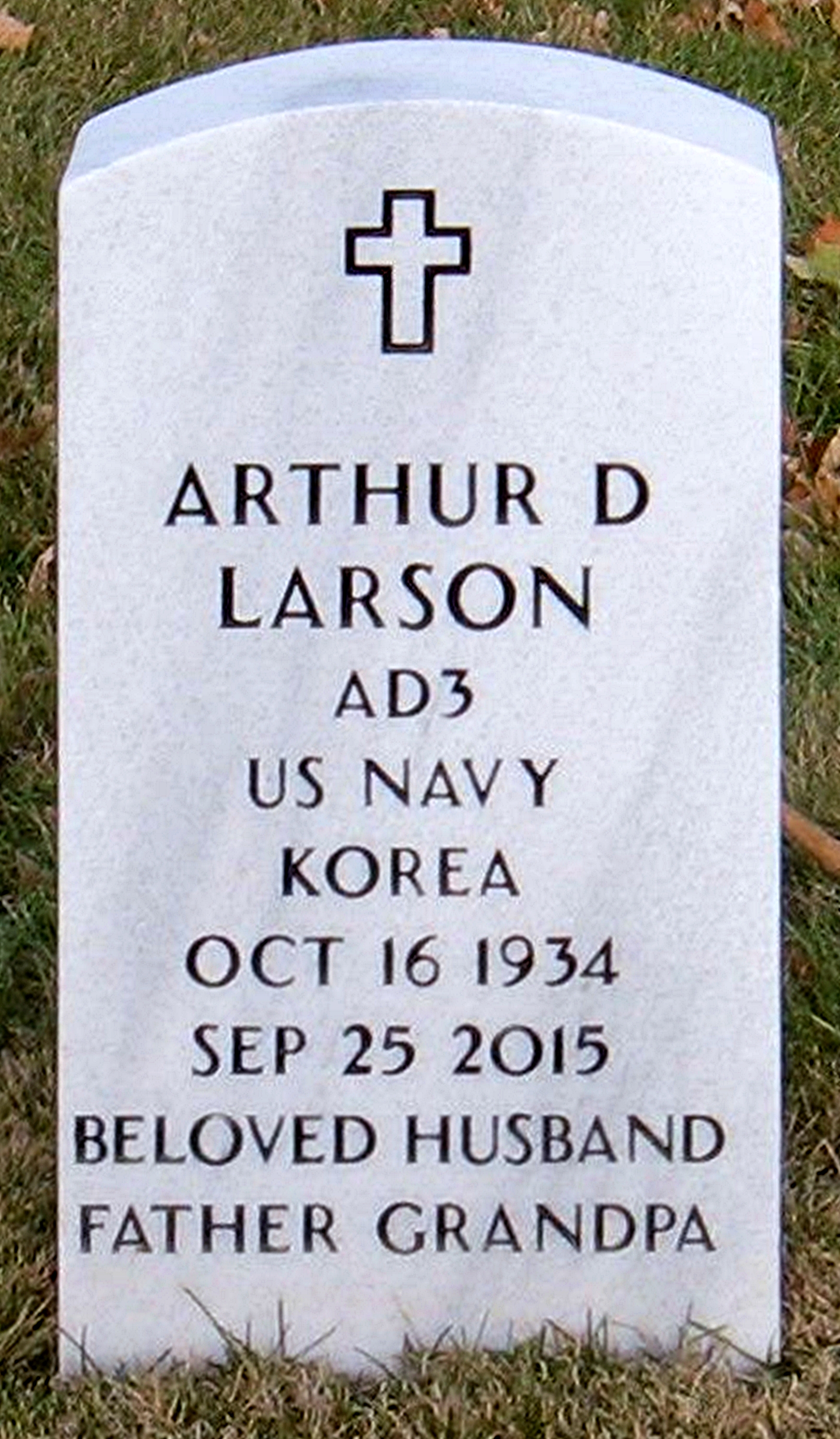 Arthur Daniel "Art" Larson died September 25, 2015, at St. Paul's Eastside, St. Paul, Ramsey Co., MN, at age 80. Buried in Ft. Snelling National Cemetery, Minneapolis, Hennepin Co., MN.