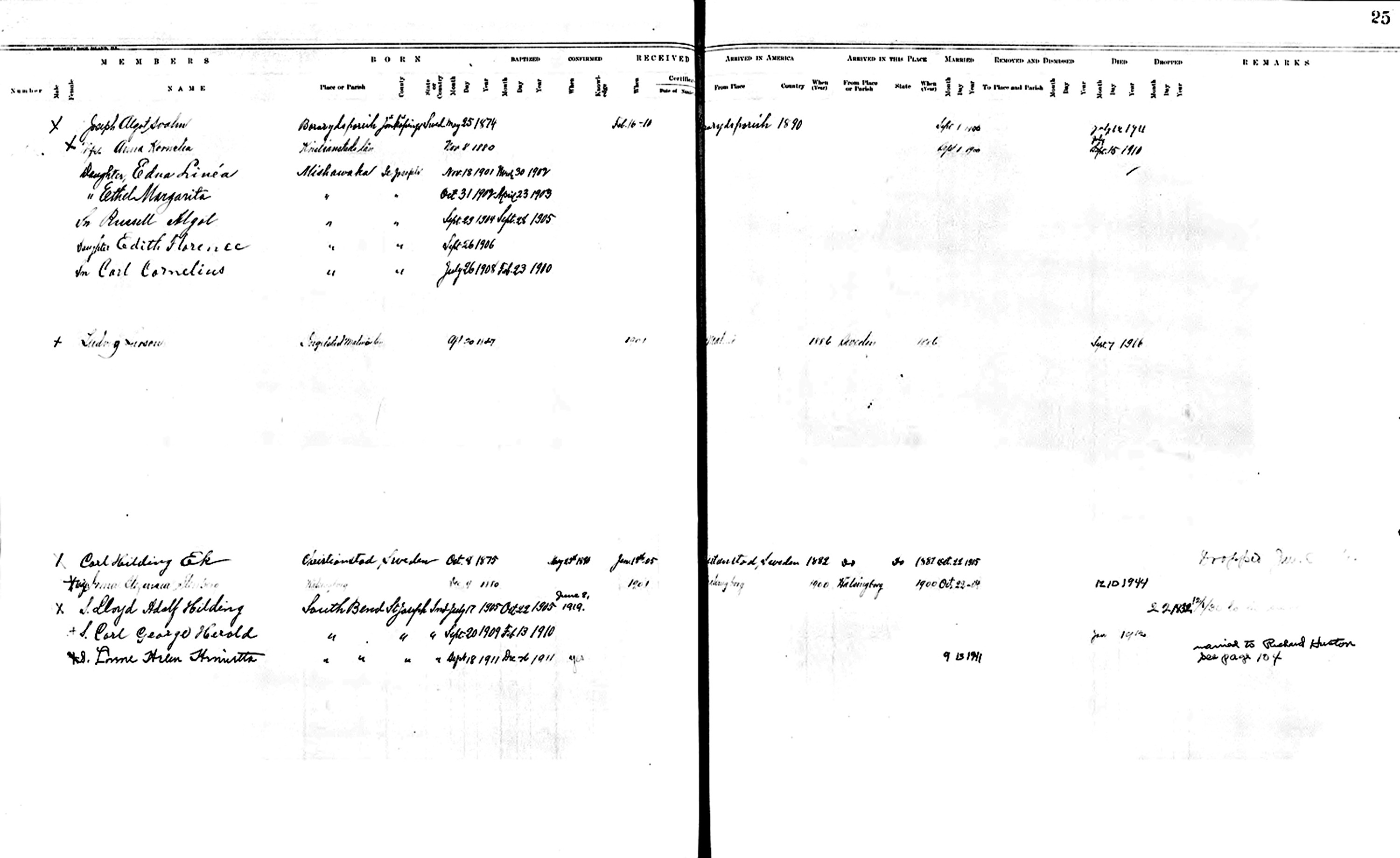 Following the death of Anna Kornelia (Liedman/Kullenburg) Svan, Josef Algot "Joseph" Svahn placed four of his five children in the Swedish Lutheran Orphan's Home in Joliet, Will Co., IL. Edna Linéa Svahn, aged 10, was sent to live in New Carlisle, IN.