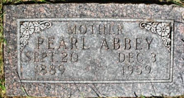 Pearl Georgina (Peoples) Abbey died December 3, 1959, in San Diego, San Diego Co., CA, at age 70. Buried in Prairie Home Cemetery, City of Gilby, Gilby Twp., Grand Forks Co., ND.