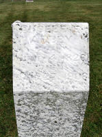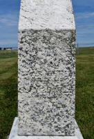 Grave markers of Charles and Phoebe Abbey, located in Milladore, WI. Leigh Larson visited the gravesite on September 13, 2001. Since Charles Oliver Abbey was killed near Vicksburg, MS, he may have been buried in Vicksburg National Cemetery, although no records show him there. The small marker in the left foreground reads: C A. which stands for Charles Abbey. The small marker to the right reads: P E A. which stands for Phoebe Elizabeth Abbey. The tall stone in the rear center contains an angled surface with the birth and death dates of Phoebe, while the vertical upright surface below contains information for Charles. The pedestal rests on a horizontal ABBEY section, and the darker color base rests on the ground. The markers have areas of moss-like plants (lichen) growing on the surfaces, indicating a lack of cleaning for many years.