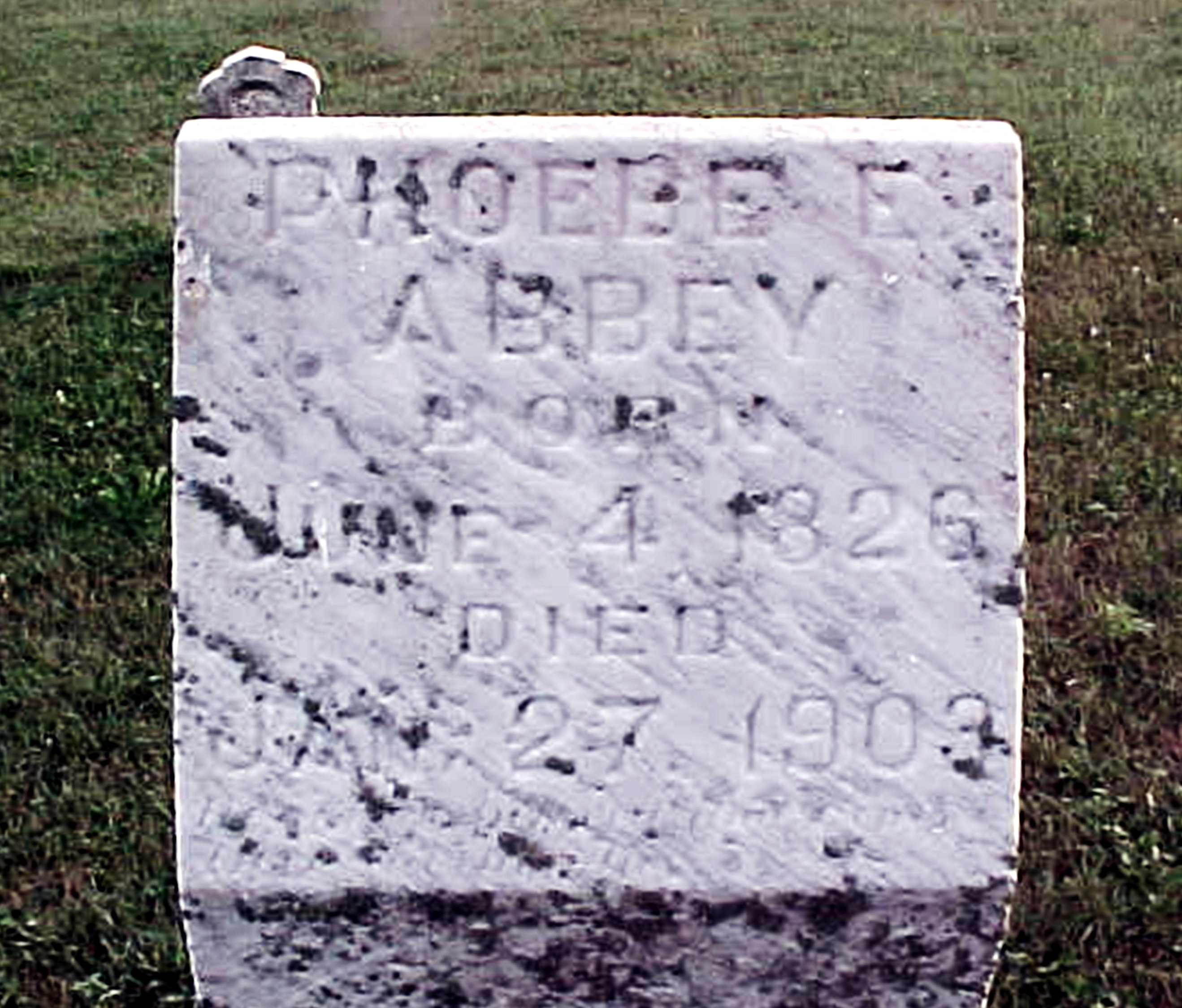 Phoebe Elizabeth Abbey grave close-up. Thanks to usgenweb for making this image available.