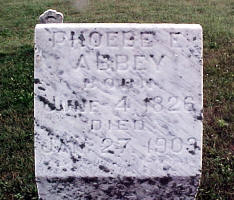 Phoebe Elizabeth "Phebe" (Searle) Abbey died January 27, 1903, at the Adam Shidell residence, Town of Sherry, Wood Co., WI, at age 76. Buried in Union Protestant Cemetery, Milladore, Wood Co., WI.