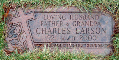 Charles Oscar "Charlie" Larson Jr. died about August 1, 2000, in Unknown, at age 79. Buried in Holy Sepulchre Cemetery, Alsip, Cook Co., IL.
