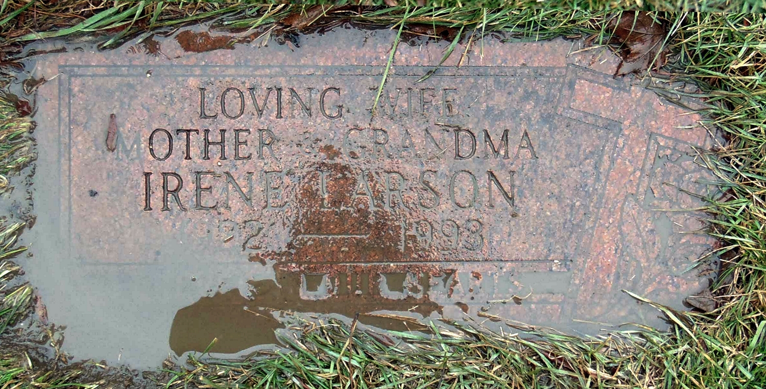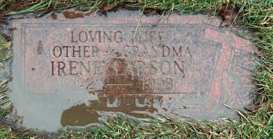Irene Gladys (Over) Larson died June 8, 1993, in Chicago, Cook Co., IL, at age 71. Buried in Holy Sepulchre Cemetery, Alsip, Cook Co., IL.