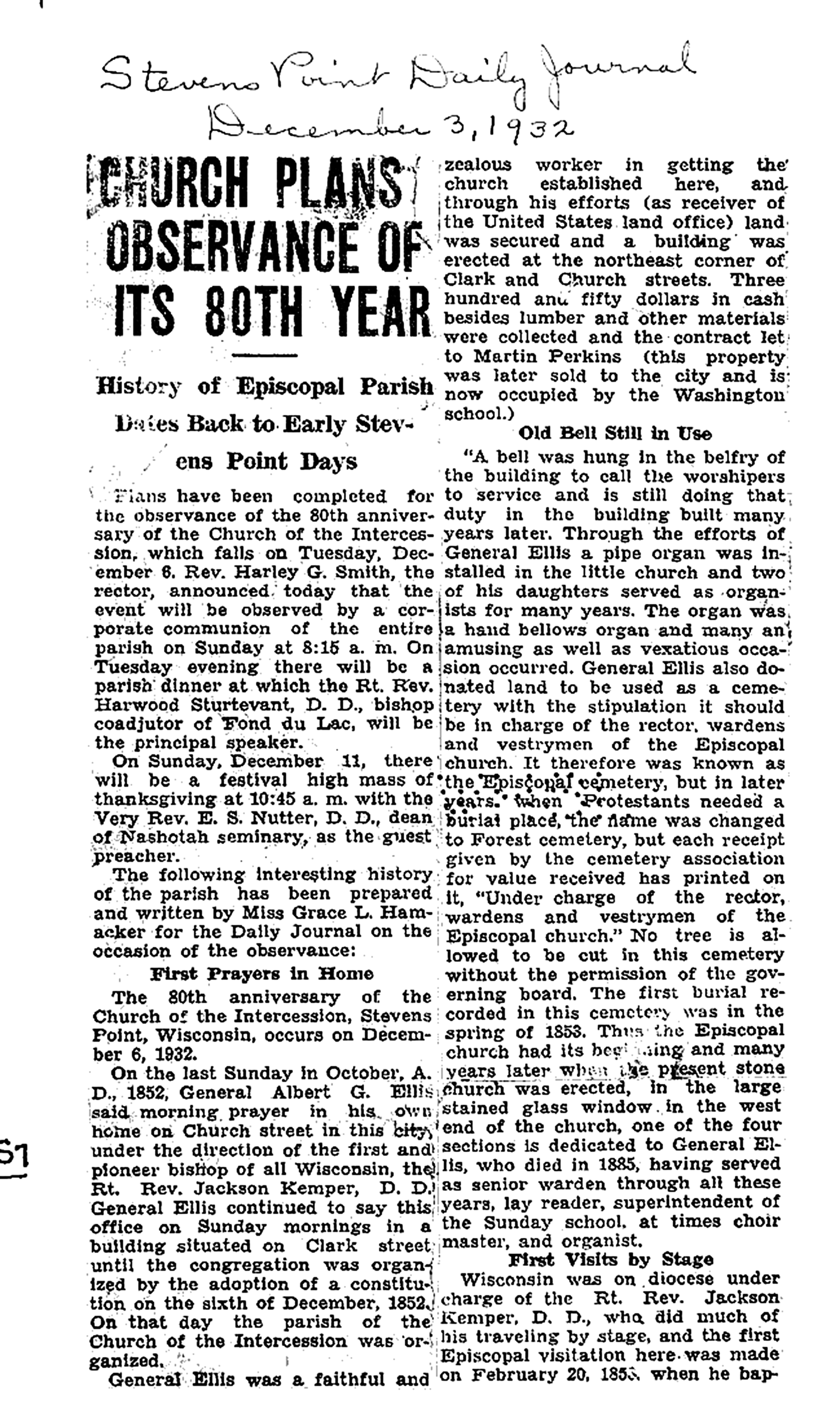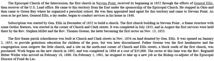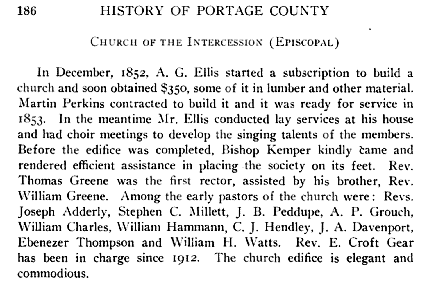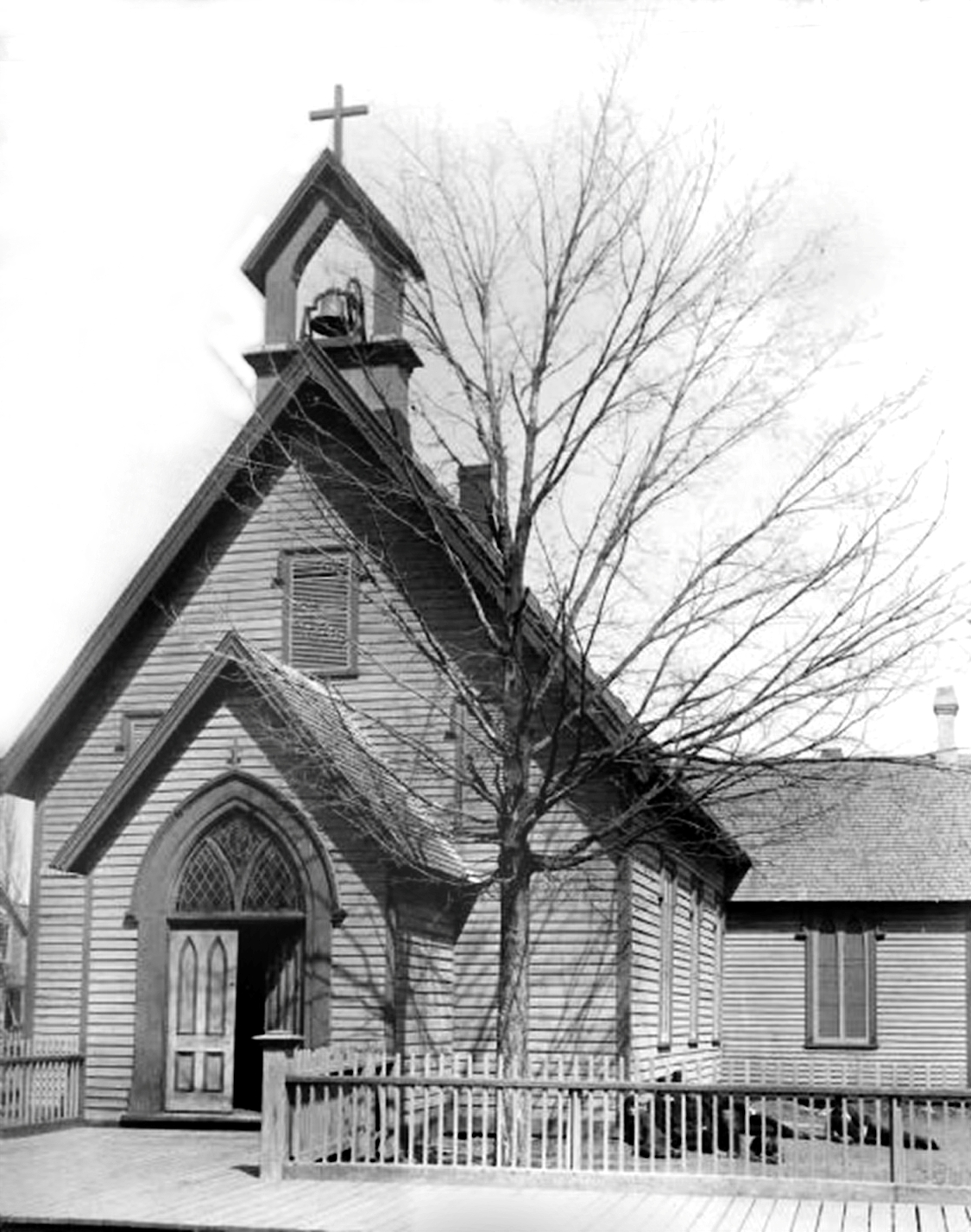 The Episcopal Church of the Intercession, the first church in the city, Stevens Point, Portage Co., WI, was built in 1852 - 1853. This is how it appeared about 1890 .