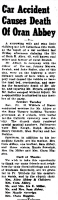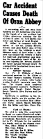 Oran Abbey was killed in a car accident about one half mile from his farm, in