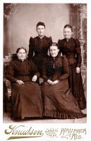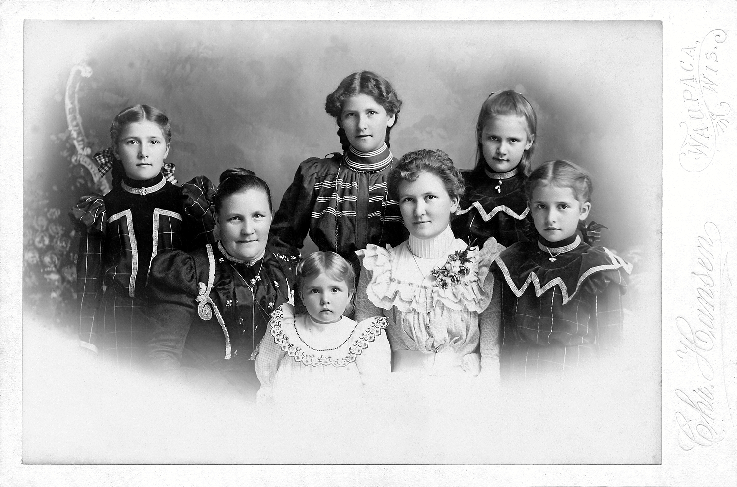 Johanne "Johanna" (Nelsen) Andersen and daughters, Nicalena seated next to her mother, Waupaca, Waupaca Co., WI, about 190 5.