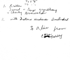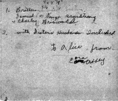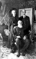 Four Armstrong relatives: back row, left to right: Clarissa H. "Clara" (Armstrong) Griswold, and Samuel Luther "Charley" Griswold . Front row: Samuel Bolton "Sam" Armstrong. Taken before 1917. Photo courtesy of Kay Koslan, who found this photo among the effects of her great-grandmother, Cora Adella (Armstrong) (Abbey) Thompson .