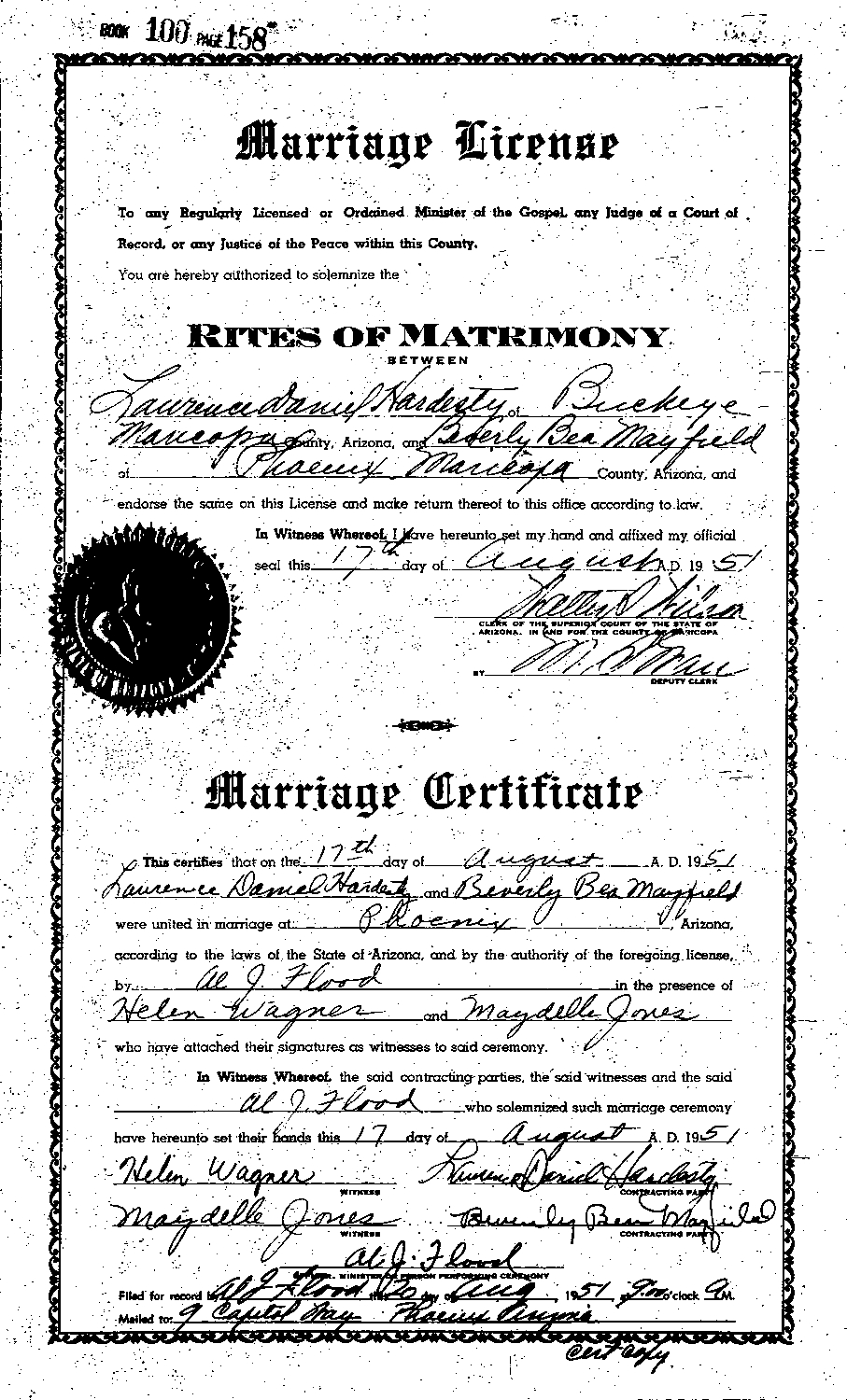 Co., AZ. Laurence was first married January 5, 1949, to Ruth Edna