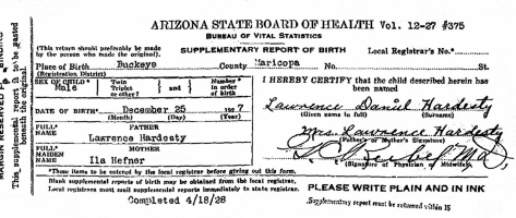 Hardesty: Born December 25, 1927, in Buckeye, Maricopa Co., AZ; Died