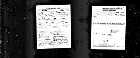 WWI Draft Registration Report taken on September 12, 1918, shows Day Thorsell is living at 526 36th