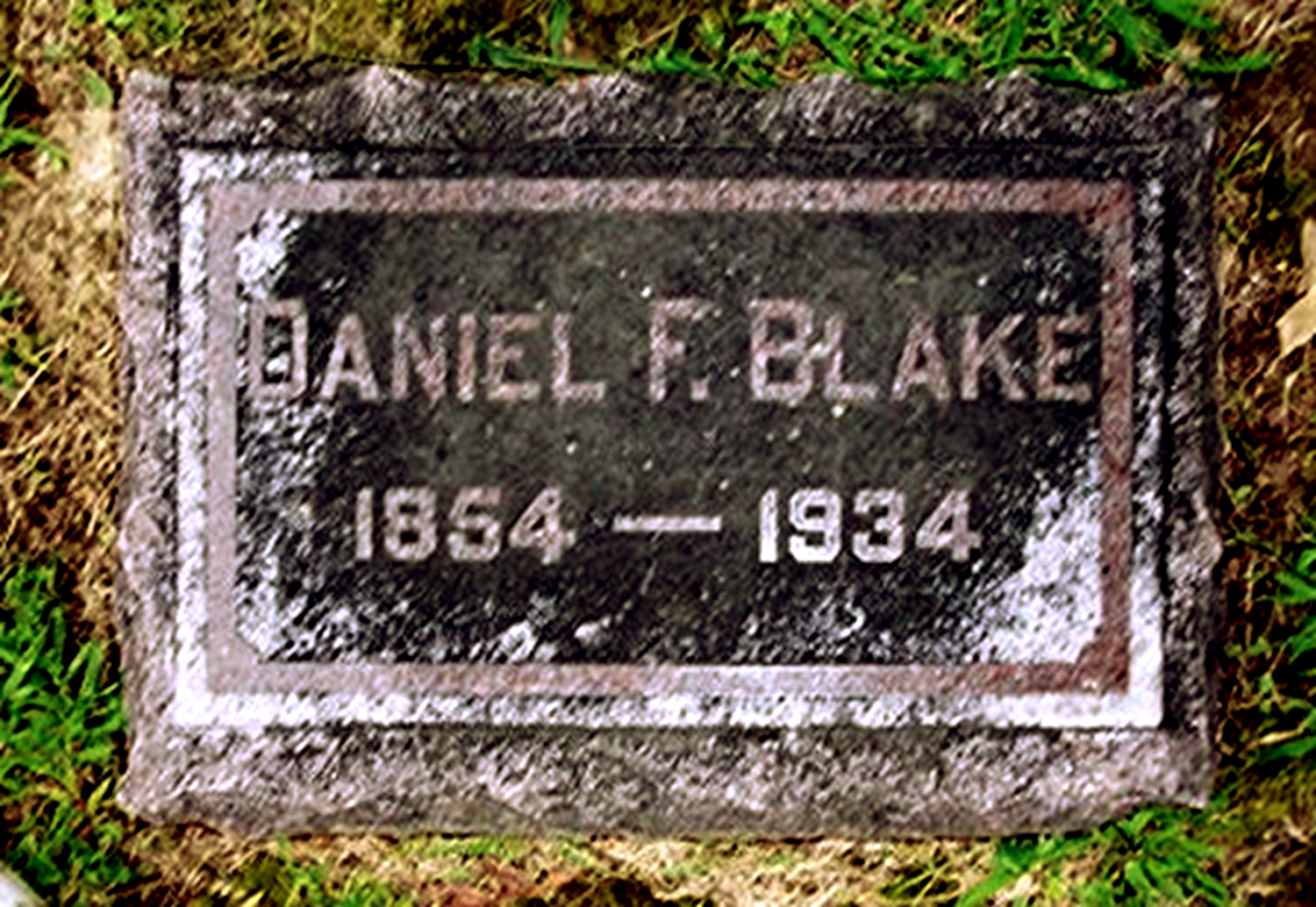 Daniel Felton "Dan" Blake is buried in Mount Washington Cemetery, Independence, MO. Thanks to Find-A-Grave for making this image available.