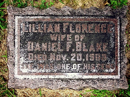 Headstone for Daniel Felton "Dan" Blake and Lillian Florence "Lillie" (Rhodes) Blake at Mount Washington Cemetery, Independence, MO. Thanks to Find-A-Grave for making this image available.