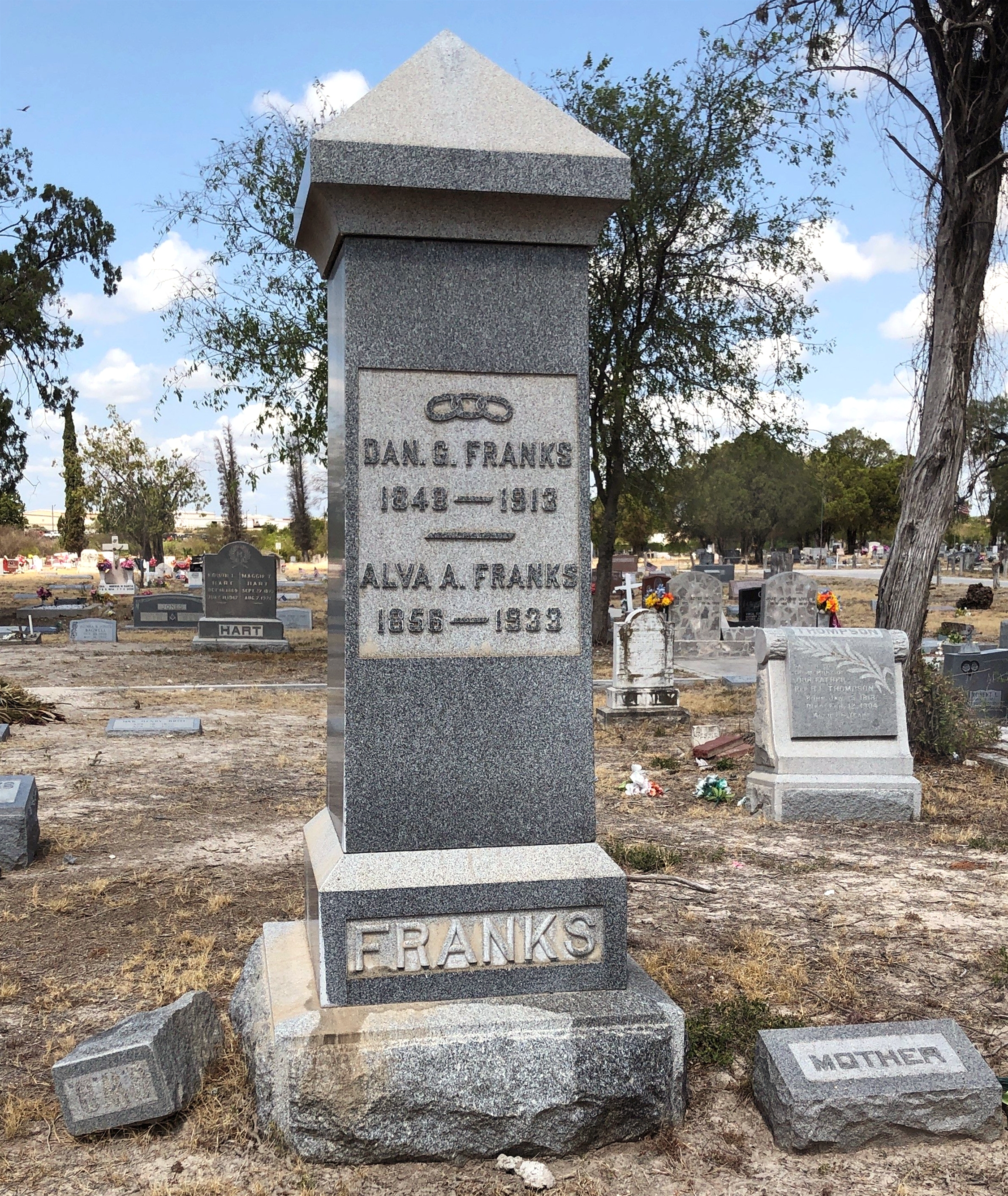 Daniel Gandy "Dan" Franks and Alva Allison (Thompson) (Brite) Franks are b uried in Westlawn Cemetery, Del Rio, Val Verde Co., TX. Thanks to Find-A-Grave for making this image available.