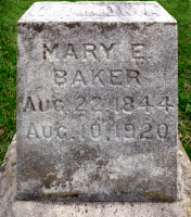 Mary Elizabeth "Lizzie" (Baker) (Lamberton) Baker died August 10, 1920, at the Rock Island County Home Infirmary, Rural Twp., Rock Island Co., IL, at age 75. Buried in Freeport City Cemetery, Freeport, Stephenson Co., IL.