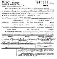 Terry Leroy Collins and Deborah Sue "Susie" Gordon/Gordon received a marriage license in Pierce Co., WA, and were married June 14, 1971, in King Co., WA.